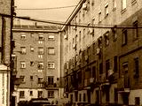 POOR NEIGHBORHOOD STREET WITH CLOTHES AND GARBAGE