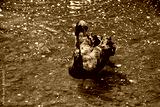Black swan is a large waterbird, a species of swan which breeds mainly in Australia. A New Zealand subspecies was apparently hunted to extinction by Maori but the species was reintroduced in the 1860