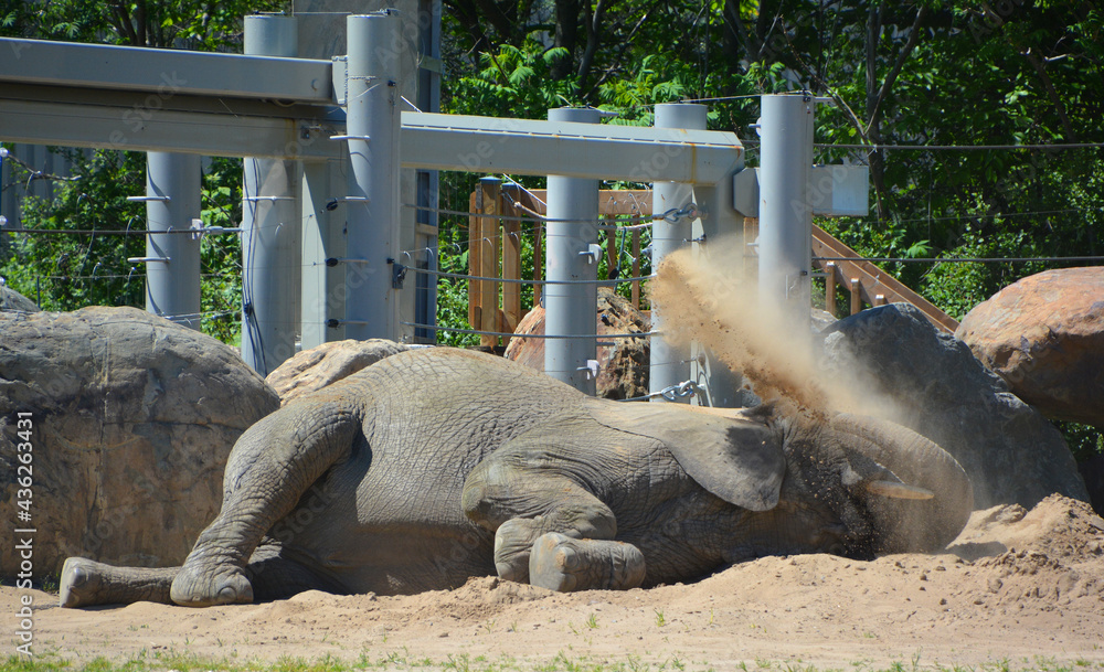 Sleeping in hot sand an african elephant is elephant of the genus Loxodonta. The genus consists of 2 extant species: the African bush elephant, L. africana, and the smaller African forest elephant