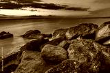 Skały nad morzem Adriatyckim w Grecji o wschodzie słońca