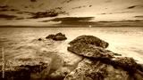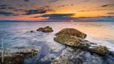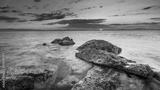 Skały nad morzem Adriatyckim w Grecji o wschodzie słońca