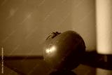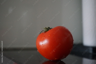 red tomato from the side with waterdrops