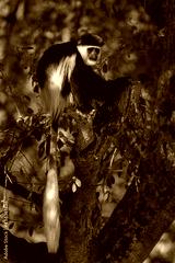Black-and-white Colobus - Colobus guereza, beautiful black and white primate from African forests and woodlands, Harenna forest, Ethiopia.