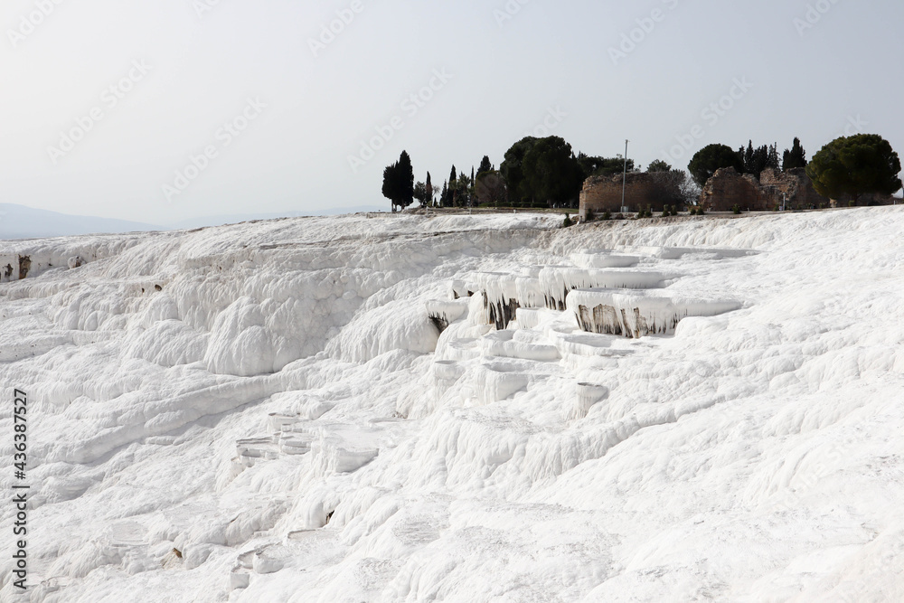 white magic in Pamukkale - limestone travertine formations pools with mineral water from hot springs