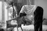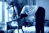 African young man working out, practicing yoga, standing in Ardha Uttanasana