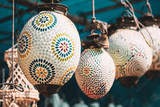 India. Market With Many Traditional Colorful Handmade Indian Lamps And Lanterns. Lanterns Hanging In Shop For Sale. Popular Souvenirs From India