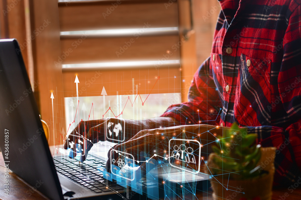 business finance technology and investment concept. Stock Market Investments Funds and Digital Assets. businessman analysing forex trading graph financial data.