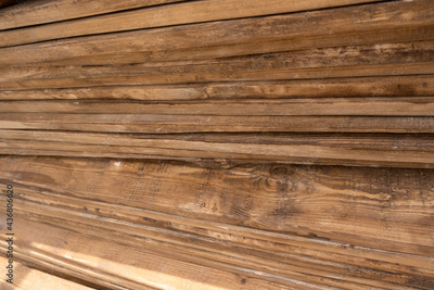 Piles of wooden planks at a sawmill, formwork. Warehouse for sawing boards at an outdoor sawmill. Plank texture.