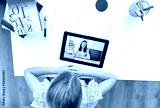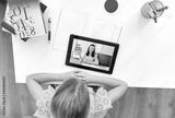 online education, e-learning and technology concept - happy student girl with teacher on tablet computer screen having video class at home