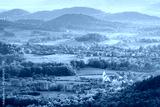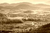 Sudetes, Lower Silesia Poland. Rural landscape made with telephoto lens on sunset