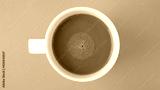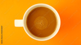 A full cup of coffee on a colored background. Coffee beans. Coffee foam.
