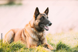Malinois Dog Outdoors In Grass. Belgian Sheepdog Are Active, Intelligent, Friendly, Protective, Alert And Hard-working. Shepherd, Belgium, Chien De Berger Belge Dog