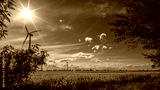 ein blühendes Rapsfeld mit bewölktem Himmel