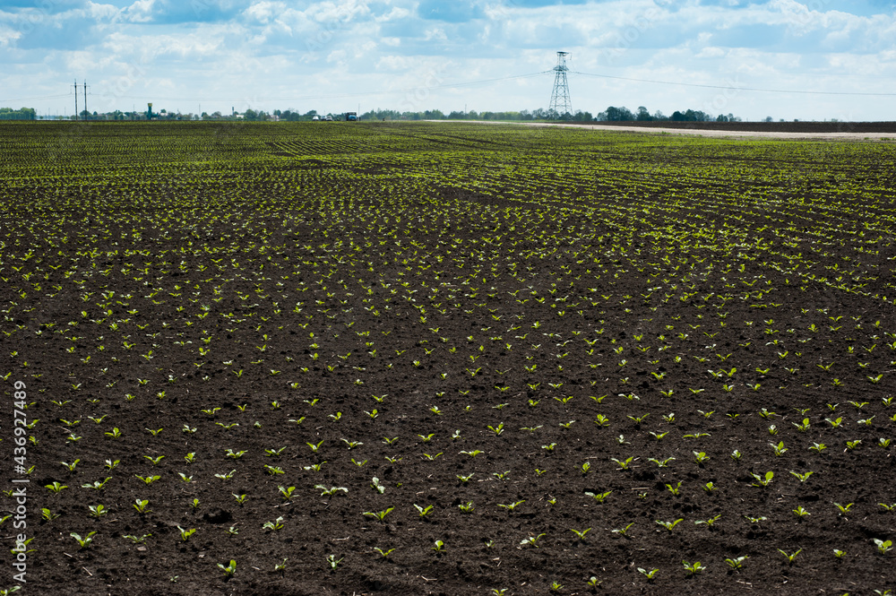 wide vief of field with Sugar beet sprouts