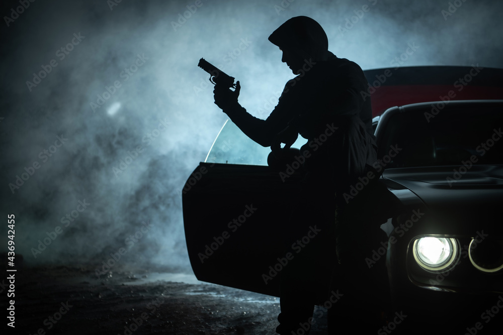 Pensive Gangster Playing with His Handgun During Late Night