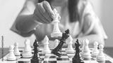 Businesswoman holding chess to take down opposing players, Proactive business planning and marketing strategy just like playing chess, Business competition and success, Leadership concept.