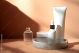mockup of beauty fashion cosmetic makeup bottle lotion product with skincare healthcare concept on background