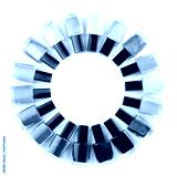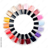 Coloured nail polish bottles stacked circle