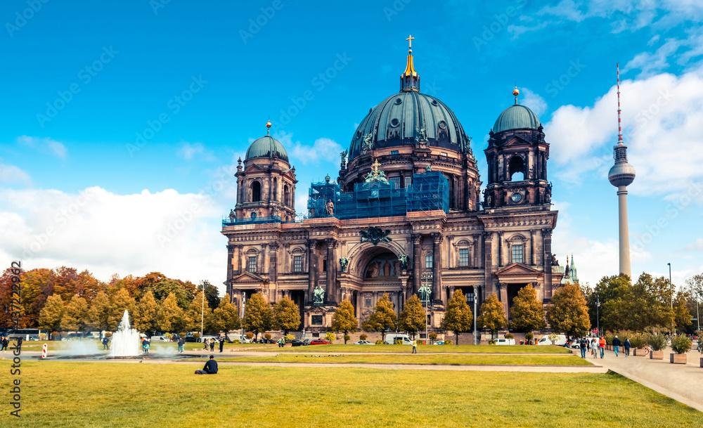 Majestic Berlin Cathedral under clear blue sky in Germany