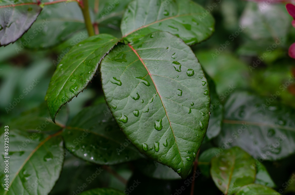 Fresh green grass with dew drops close up. Water drops on the fresh grass after rain. Light morning dew on the green grass.