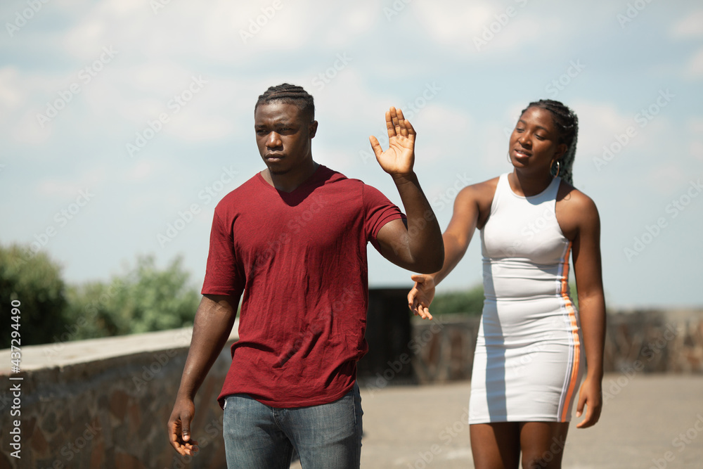 quarrel between a man and a woman in a summer park