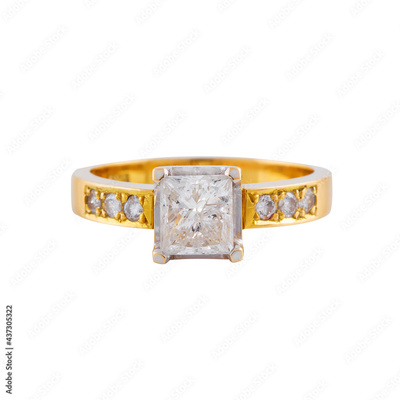 Golden ring with a big diamond isolated on a white background
