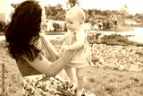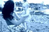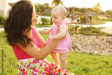Baby making first steps with mother help