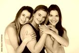 friendship, beauty, body positive and people concept - group of happy women different in white underwear over pink background