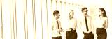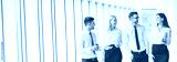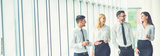 The business people walk in the office balcony