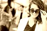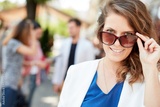Outdoor portrait of attractive young woman in sunglasses looking at camera.