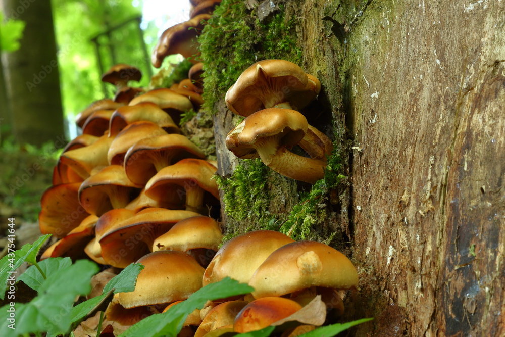 Forest mushrooms, arboreal mushrooms on a spring day.