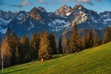 Widok na panoramę Tatr Wysokich z Rusinowej Polany w złotej godzinie