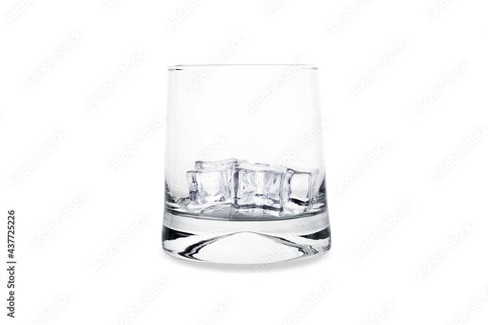 Glass with ice cubes, isolated on white.