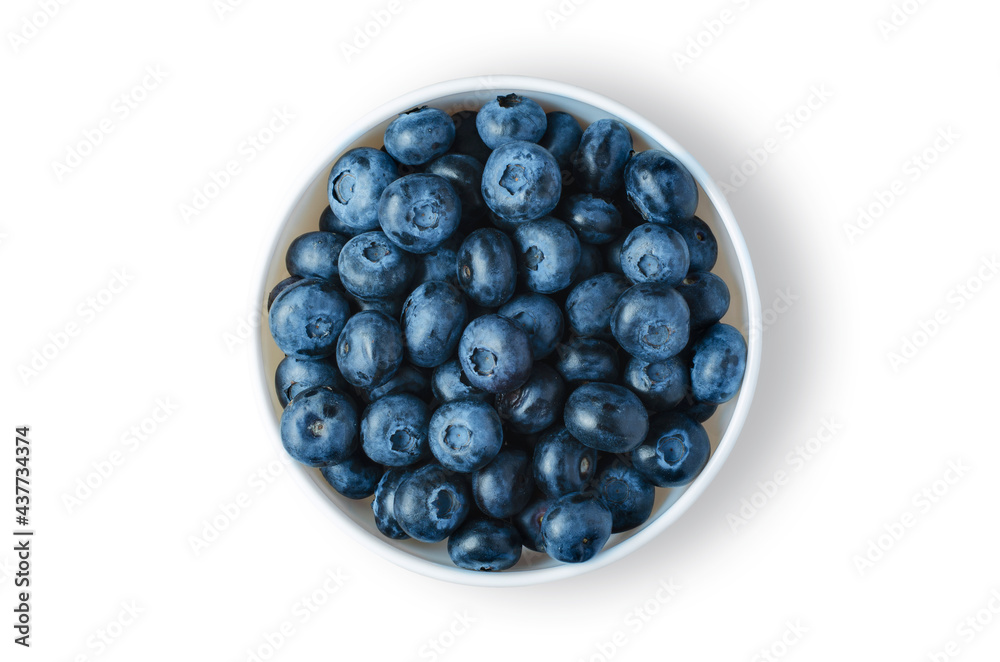 Blueberries. Ripe berries in a white plate. Isolated on white