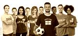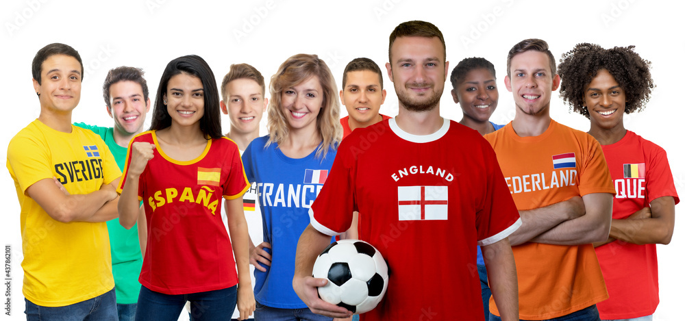 Football fan from England with large group of european soccer supporters
