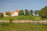 Bauska city castle in Latvia up in the hill. Sunny autumn day.