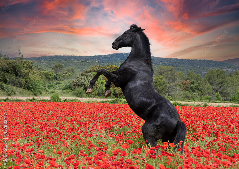 rearing horse in poppies
