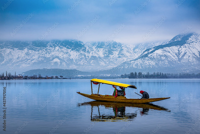 A beautiful view of Dal Lake in winter, Srinagar, Kashmir, India.