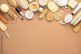 Individual hygiene or home spa treatment sustainable products background with blank space for a text