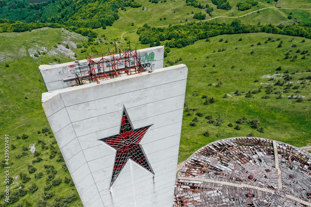 Bulgaria, abandoned Buzludzha building, communist congress monument.