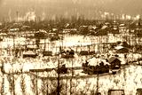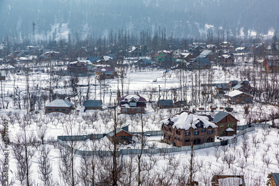 Snow-filled farm villages and rivers on the way from Srinagar to Sonmarg and Gulmarg