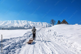 Local Kashmiri driving sledge in winter season, Gulmarg, Kashmir