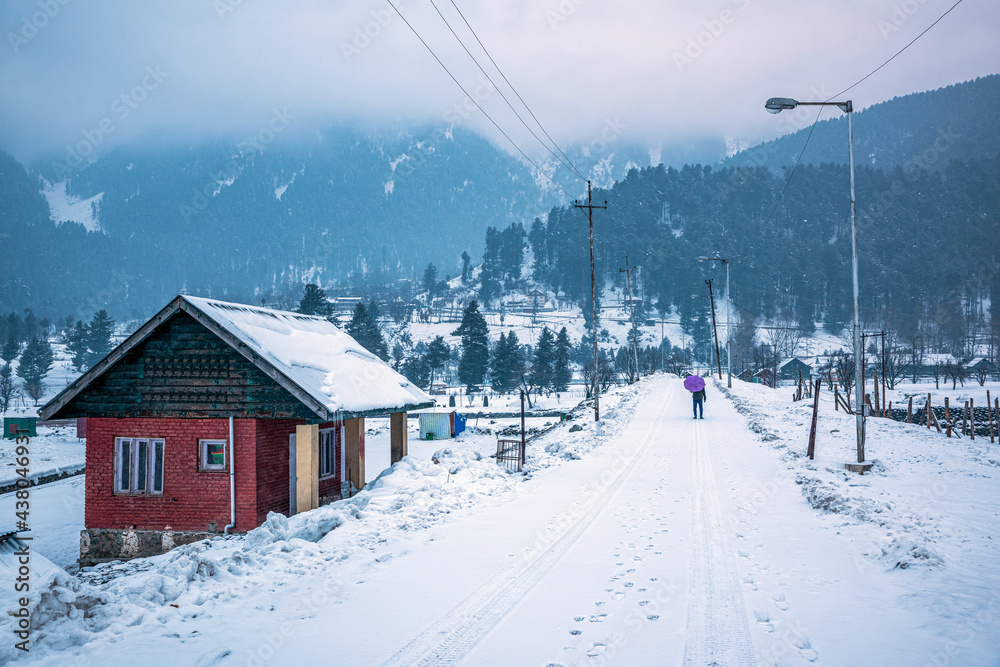 Beautiful view of Pahalgam during winter season