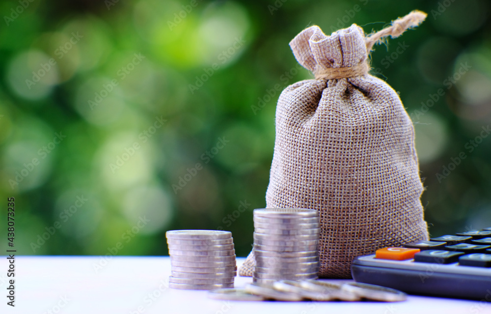 saving money concept, stacking coins with globe on table background, Advertising coins of finance and banking, business growth concept