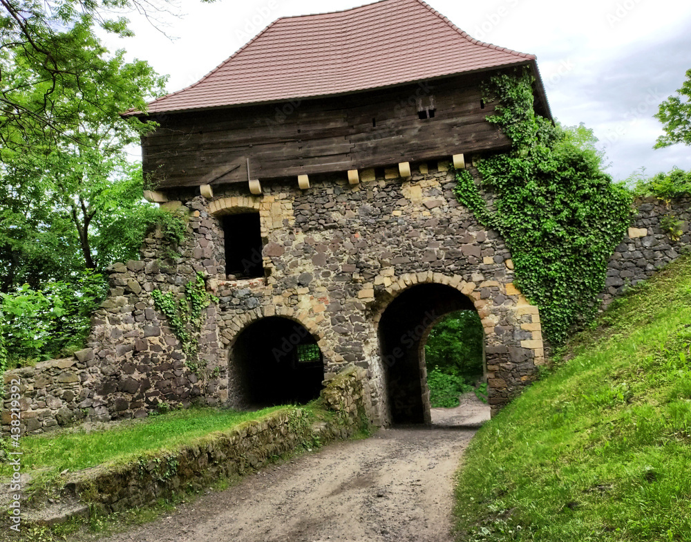 Średniowieczny zamek Grodziec z XII w. Dolnośląskie. Polska. Brama główna.