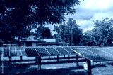 photovoltaic solar power panel on sky background, green clean Alternative power energy concept.