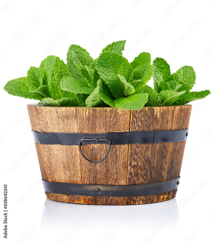Fresh leaf mint green herbs, isolated on white background. Stock photo.