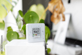 CO₂ sensor monitor. Bad Indoor air quality sensor. Healthy work environment. Work from home. Control proper ventilation in your levels airflow in the room. Carbon dioxide levels and airflow Smart home