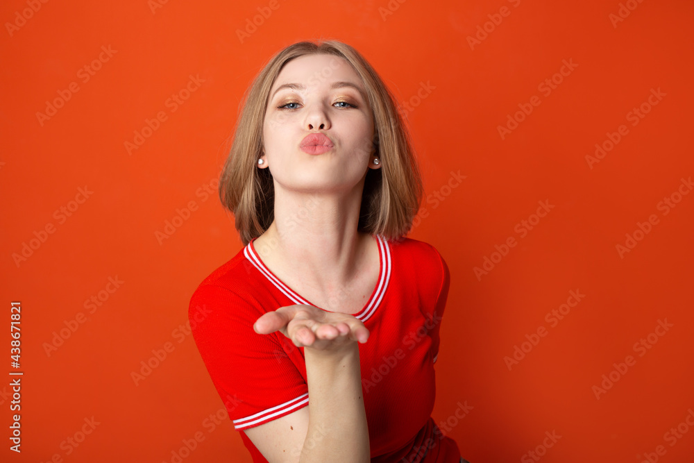 cheerful young woman with hand gesture
