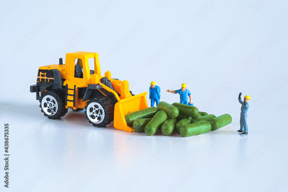 Worker figure with herb drug capsule ,health concept.